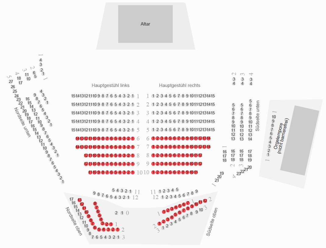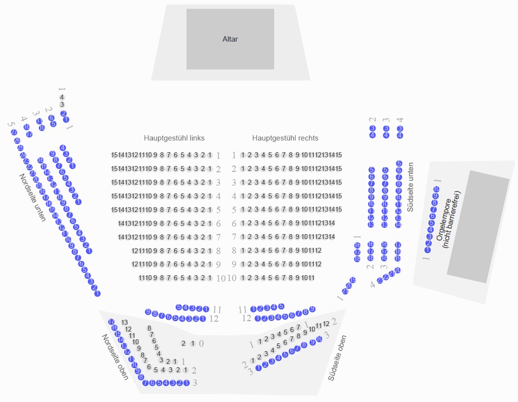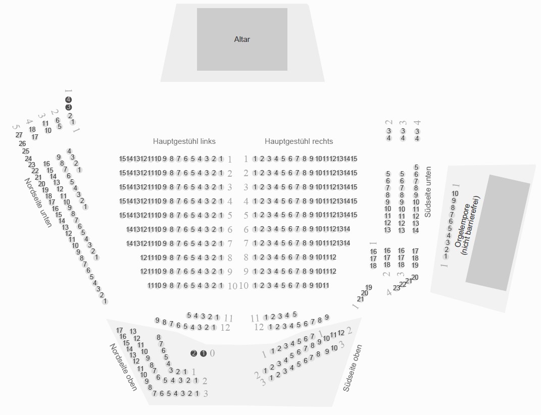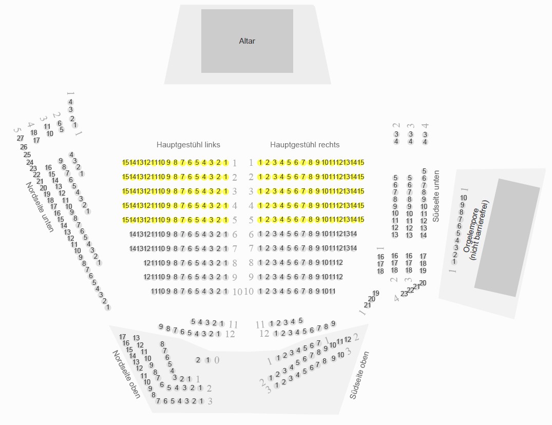 Klicken Sie unten auf das Saalplan-Symbol neben der Kategorie zur Ansicht der zugehörigen Plätze